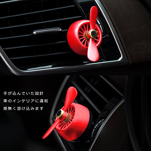 その秘密はプロペラを模したデザイン。本体をエアコン送風口に取り付けエアコンを付けることでプロペラが回転し、アロマの香りを漂わせてくれるのです。