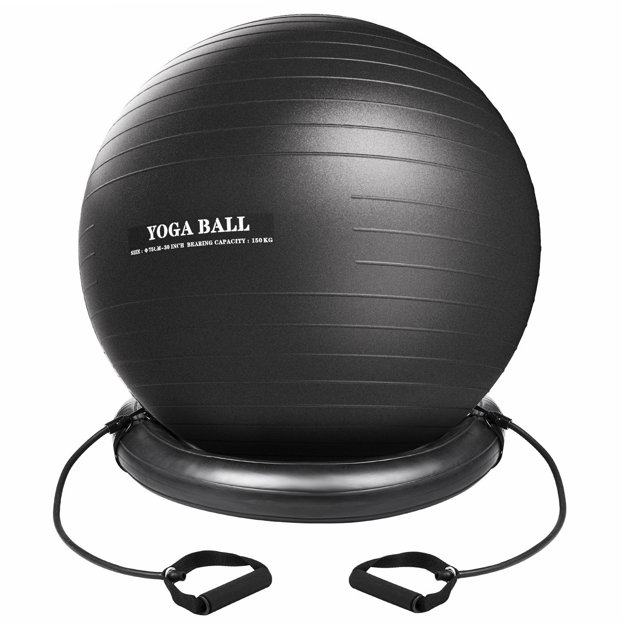 直径75センチで長身の方向けのバランスボールです。トレーニングチューブがついていて、さらにバランスボールを固定させるリングも付属していますよ。椅子として使うときにも重宝するでしょう。PVC素材で作られていて、安心で安全です。臭いもなく無臭なところも良いですね。アフターサービスも充実していて、60日間の返金保証と、さらに12ヶ月間のメーカー保証がついています。