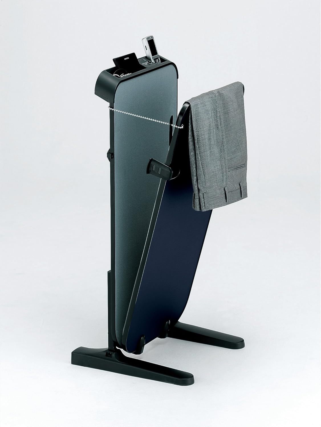 操作部には抗菌加工を施し、常に清潔に使用できるのが特徴のズボンプレッサーです。ハンガーが付いているのでジャケットなどをかけることができ、お出かけ前の準備が楽になります。