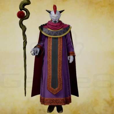 「全てを滅ぼす者」を自称し、人々の死や苦しみを無上の喜びとし糧とするラスボス。ゲーム中盤まではバラモスが黒幕であるものとして話が展開するが、後にバラモスもゾーマの手下の1人にすぎないことが明らかになります。初期状態では闇の力のバリア「闇の衣」を身にまとっており、ある特定のアイテムの力によりはぎ取ることができますが、闇の衣をはぎ取らなくとも倒すことは可能です。闇の衣をはぎ取ると薬草やHP回復系呪文によってダメージを受けるという特殊な性質を持ち、後の作品のボスなどが使うこととなる「凍てつく波動」をシリーズで初めて使用したキャラクターです。リメイク版以降は独特のポーズを取りながら兜にある目玉から放ちます。